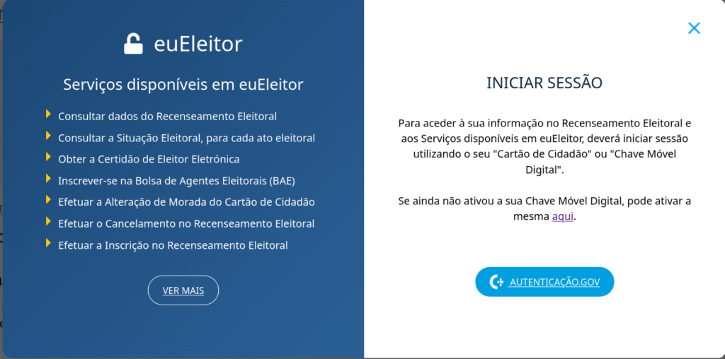 Opção 2: Reinscreva-se diretamente no Portal do Eleitor. Vai precisar da Chave Móvel Digital , que pode ser obtida no consulado, ou diretamente a partir do seu telemóvel. Veja aqui como ativar a sua Chave Móvel Digital.